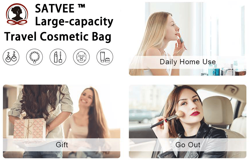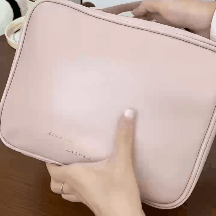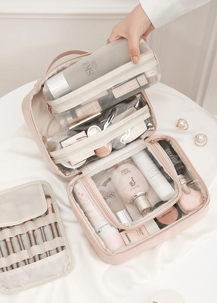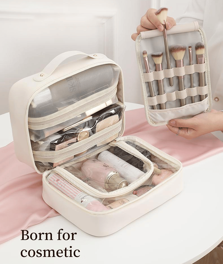 Flexible fabric compartments transform at your every whim to suit whatever your needs demand. Powders here, potions there, with ample allowance for all your beautifying accoutrements.